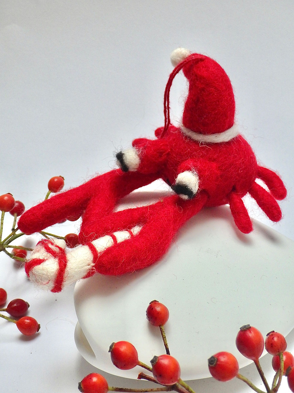 Diese kleine Weihnachts-Robbe ist ca. 6 x 10 cm groß und hat einen extra eingearbeiteten Hänger.