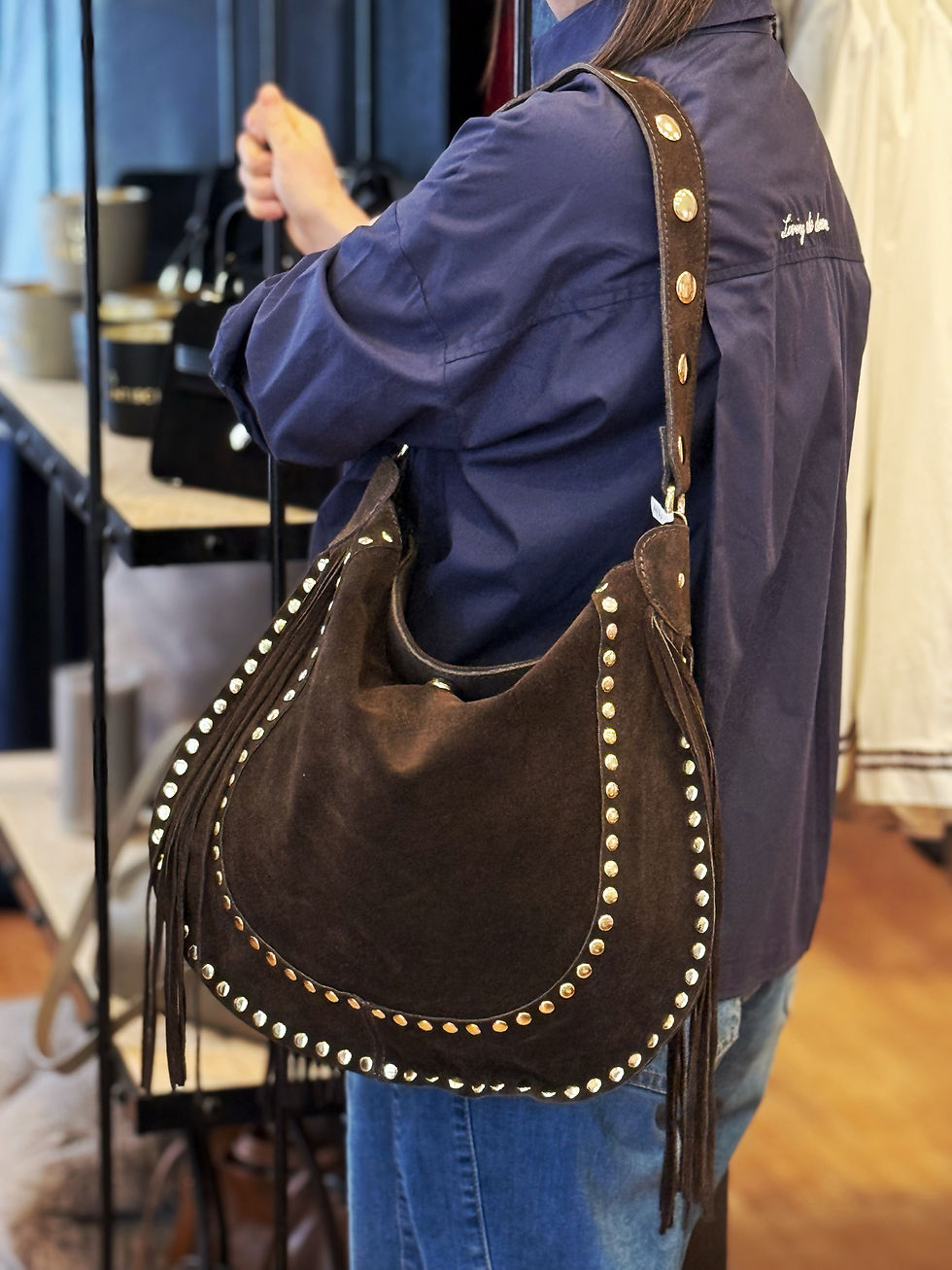 Wildledertasche mit Fransen - Dunkelbraun